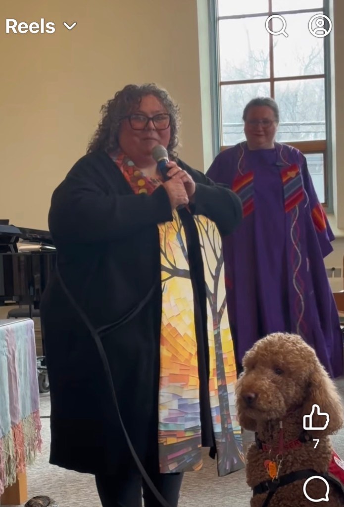 To lead worship with our new parish minister…and me, leading the music.